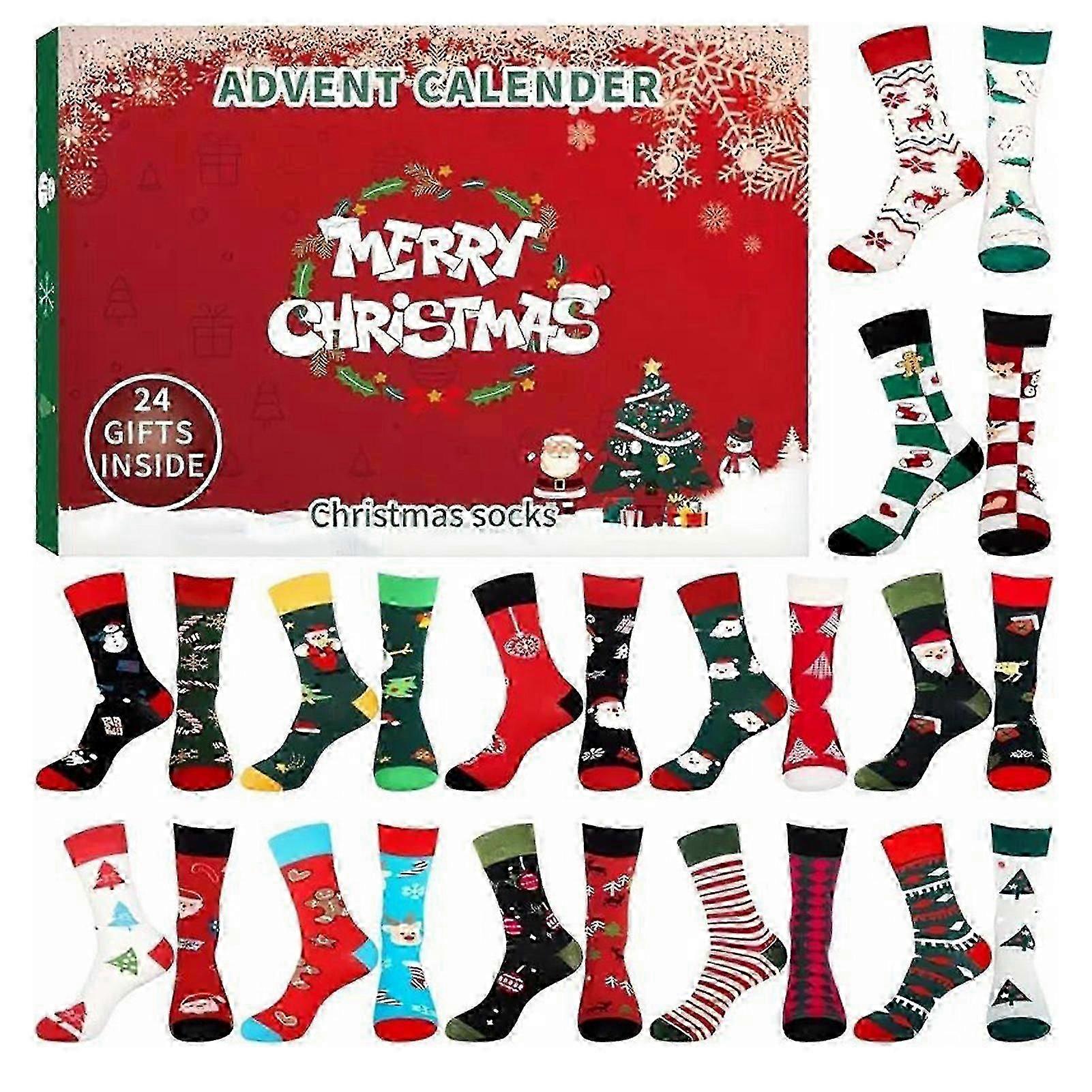 24 Pairs Xmas Sock Advent Calendar 2025 Fun, Colorful Holiday Socks for Men & Women, Perfect for Family Gatherings & Winter Mornings