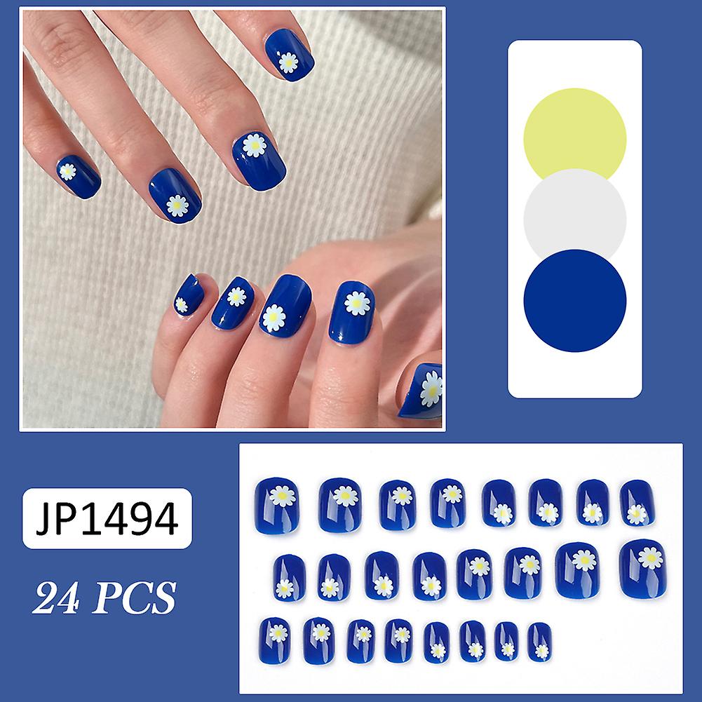 24pcs Blue Little Daisy Pattern False Nails Durable False Artificial Nails