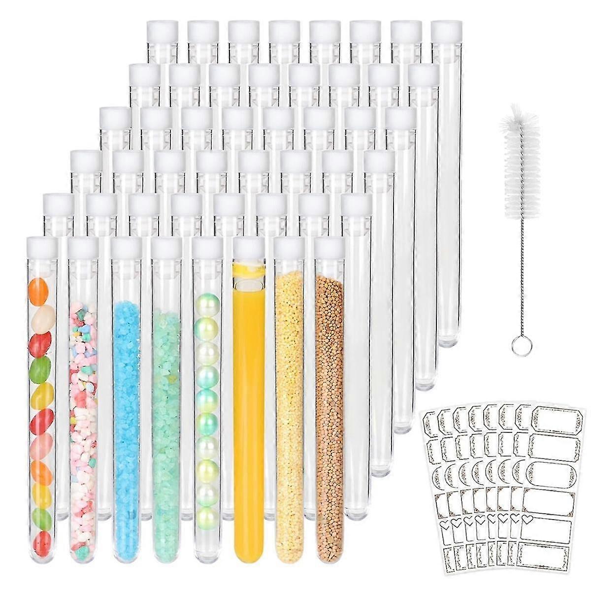 25 Ml Test Tubes 48 Pack, Plastic Test Tubes With Caps, Clear Tubes With Lids, Small Test Tubes With Brushes, For Lab