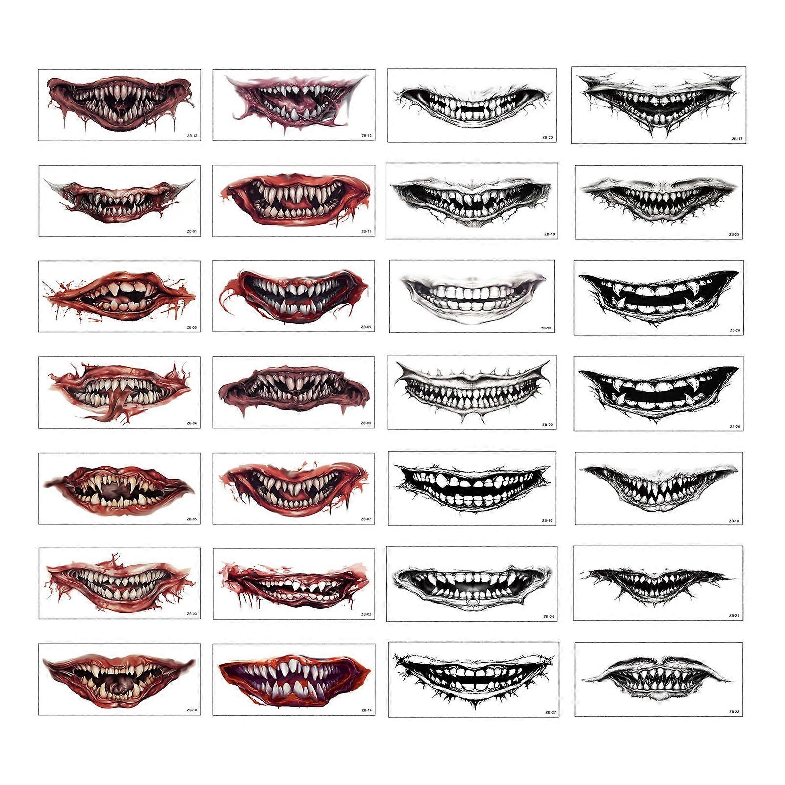 2/5/10/20Pcs Halloween Spooky Mouth Tattoos Stickers Scar Face Tattoos Waterproof Temporary Tattoos Party Body Art DIY Makeup Decal