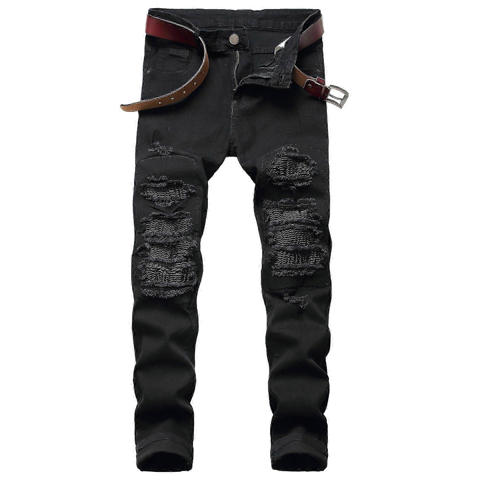 27-42 Stretch Ripped Men Jeans Fashion Knee Hole Classic Blue Black Jeans Men's Summer New Denim Trousers