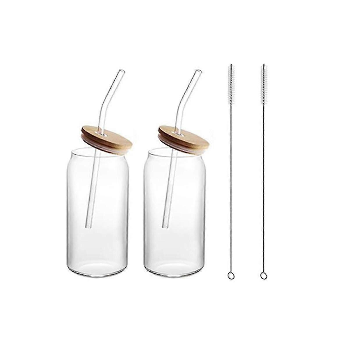 2Pcs 16Oz Glass Cups with Lids and Straws Clear Glass Cups for Coffee, Beer, Tea, Wine Glasses Beverage Utensils Durable