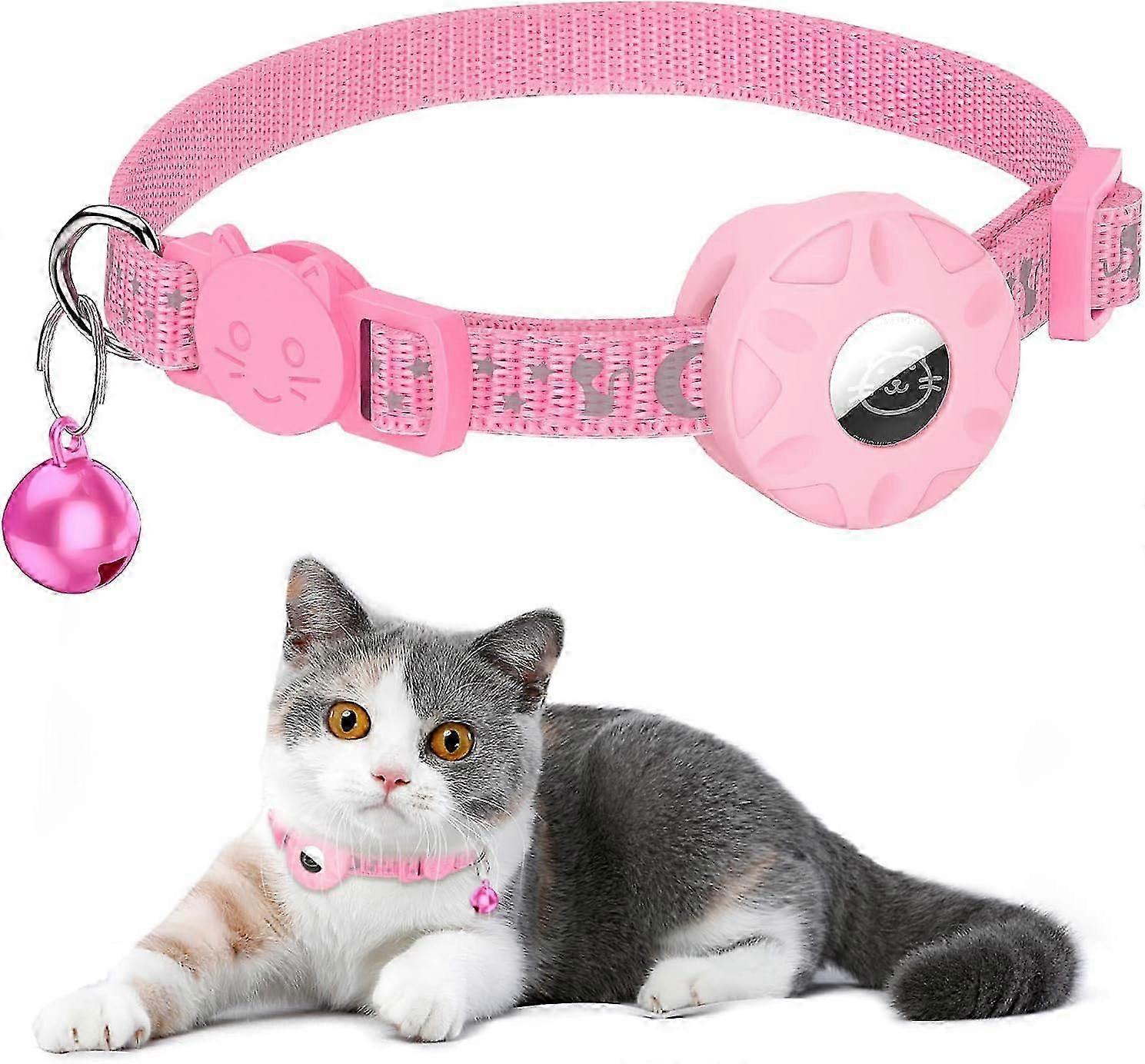 2pcs Airtag Cat Collar, Reflective Cat Collar with Safety Buckle, with Waterproof Airtag Holder for Kitten and Puppy, Adjustable 20-33cm (Pink)