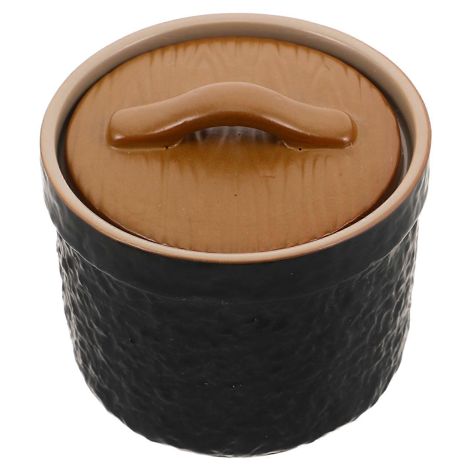2Pcs Ceramic Stew Pot with Lid for Cooking Black Porcelain Soup Bowl
