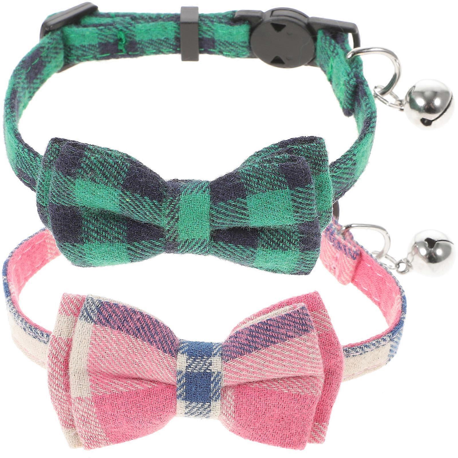 2pcs Pet Cat Bowknot Bell Collar with Checked Pattern Pet Cat Collar S