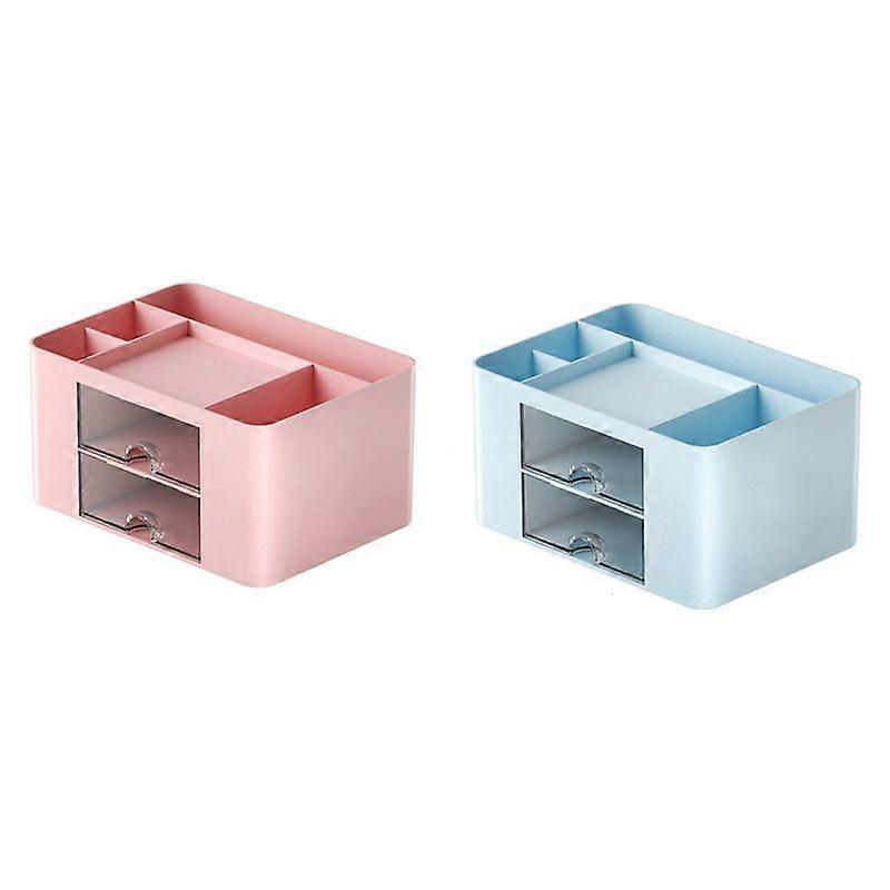 2Pcs Pink+Blue Simple Transparent Drawer Storage Box