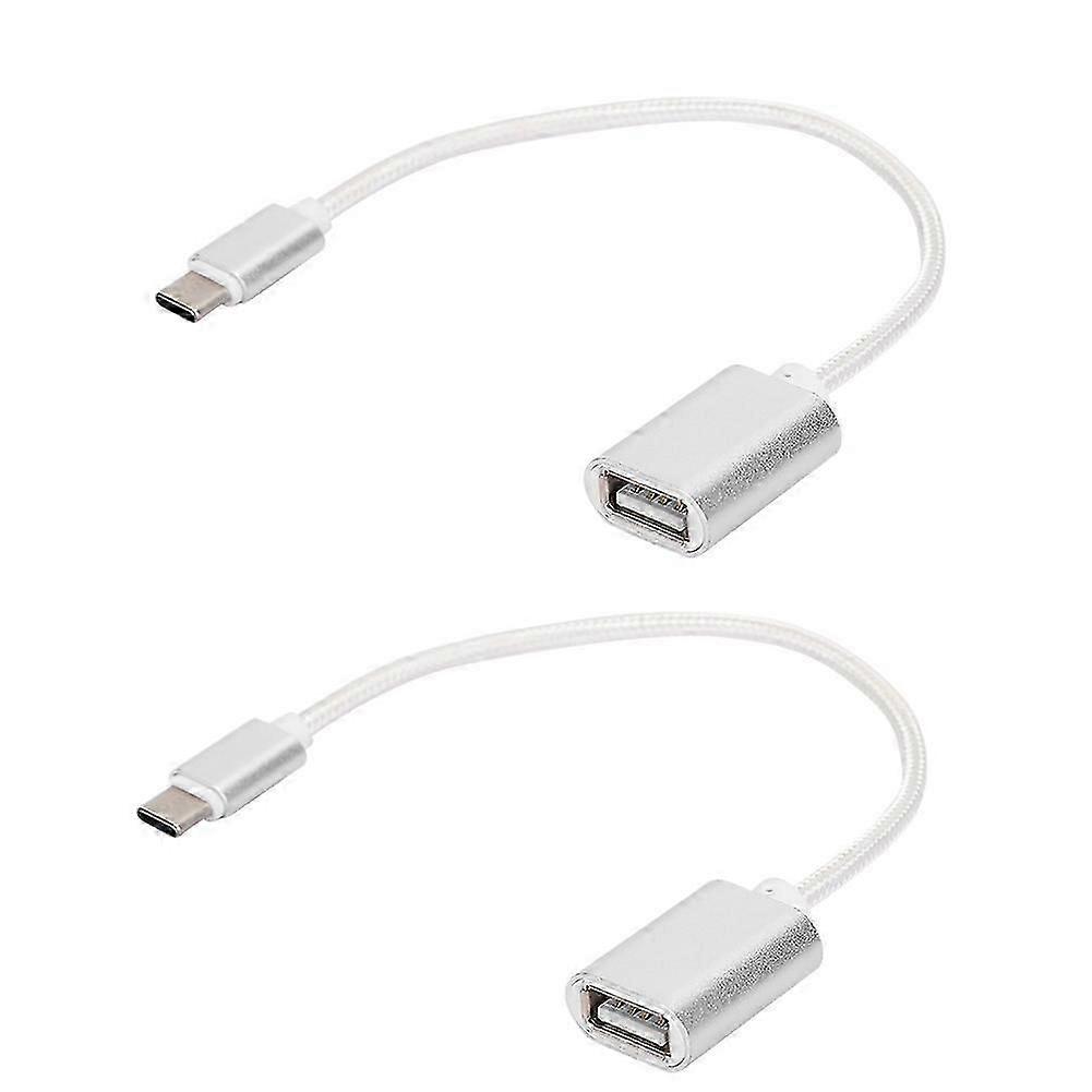 2Pcs TypeC Patch Cord USB Box USB Flash Disk Card Reader Transfer OTG Adapter Cablesilver