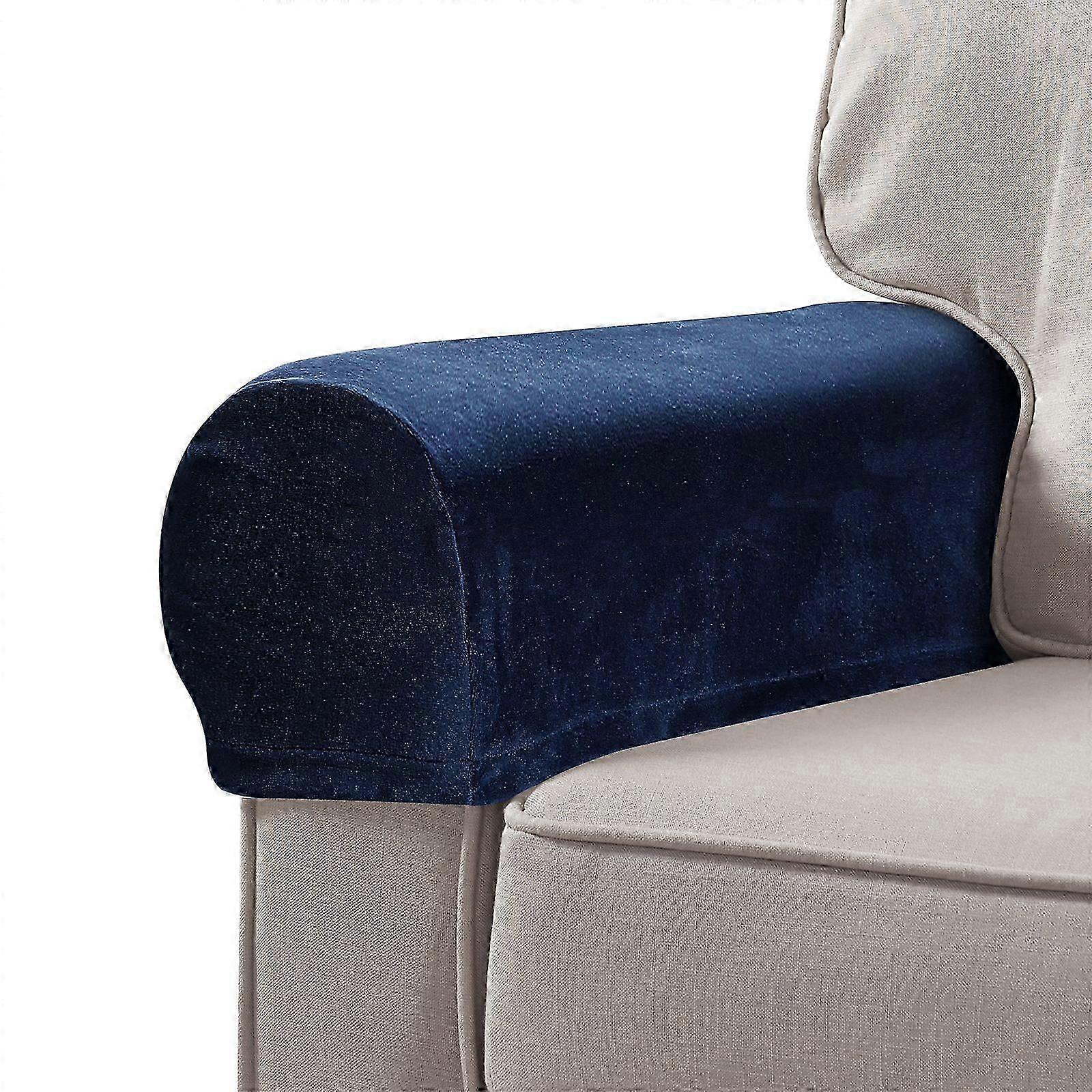 2Pcs Universal Sofa Armrest Cover Elastic Armrest Protector Solid Color Armrest Protective Cloth Navy