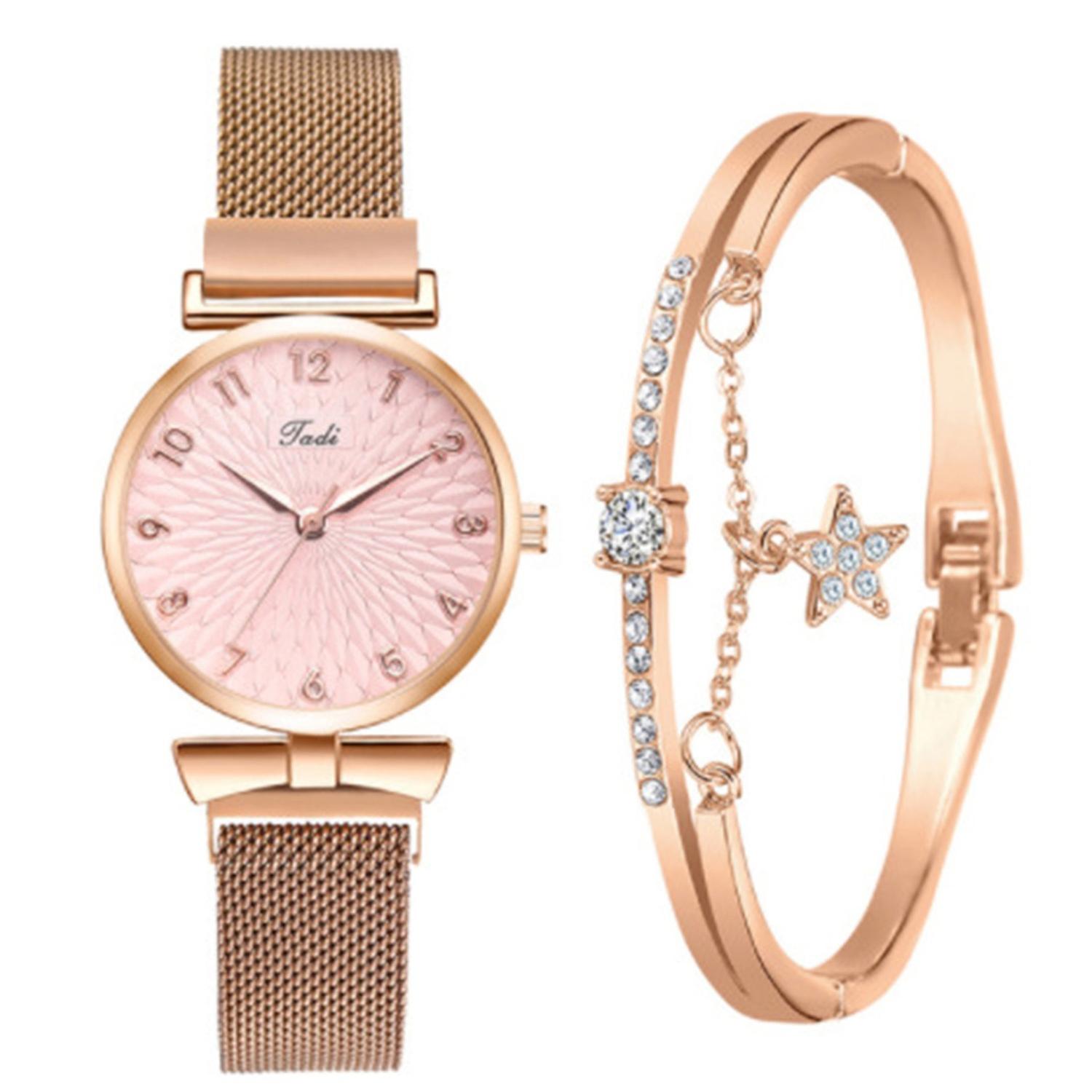 2Pcs/Set Women Watch Bracelet Kit Round Dial Numerals Pointer Shiny Accurate Decorative Gift Ladies