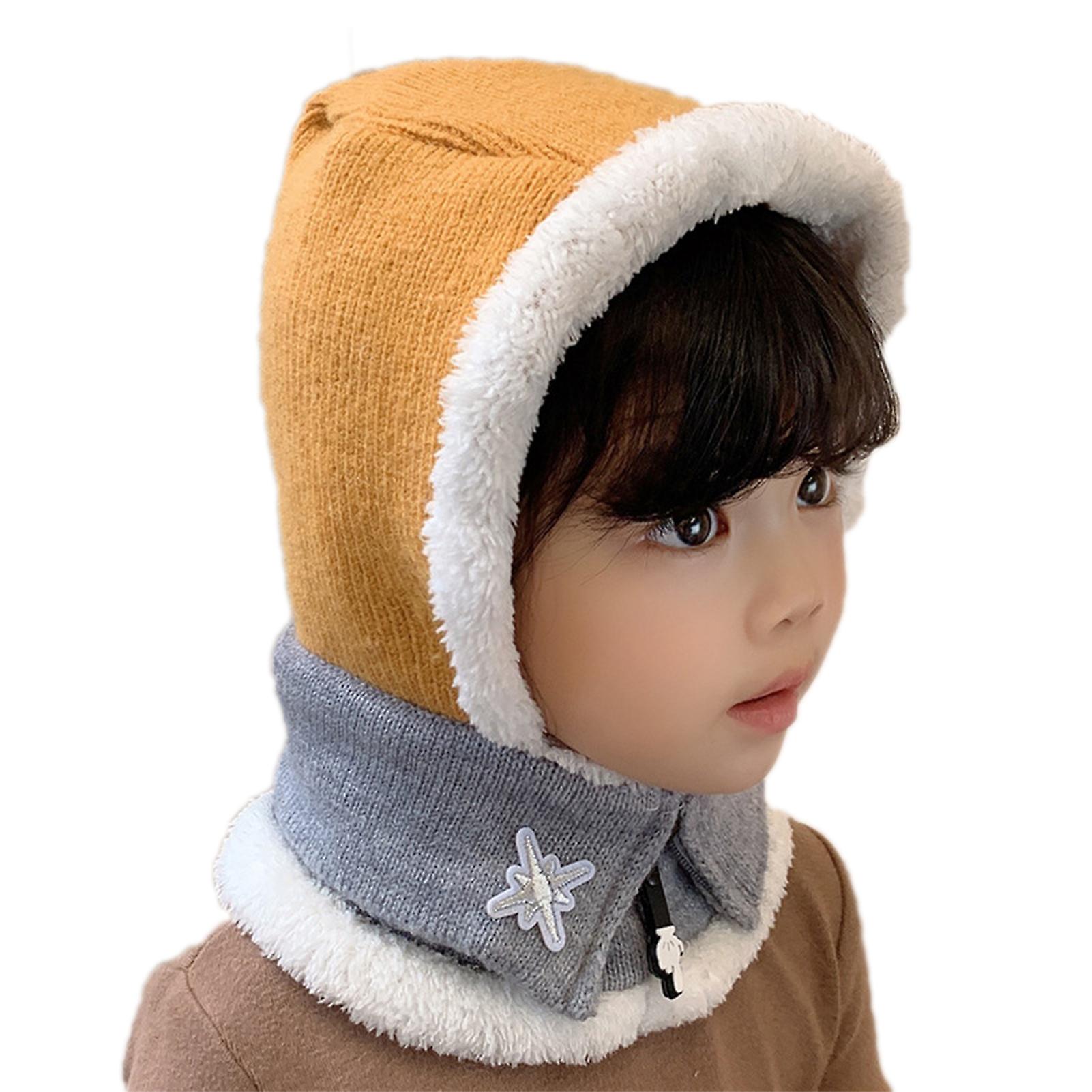 2-in-1 Children Knitted Cap Autumn Winter Boys Girls Woolen Plush Hat Cap Scarf