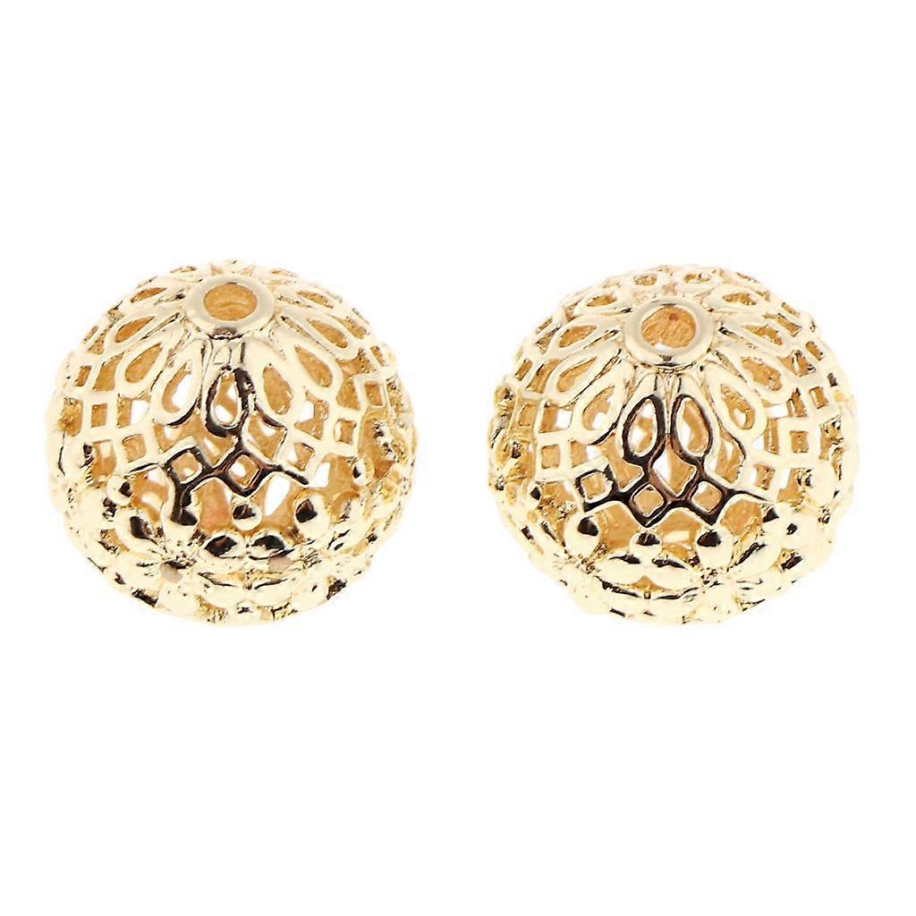 2x Gold Plated Hollow Filigree Spacer Loose Beads Jewelry Findings 17X10MM