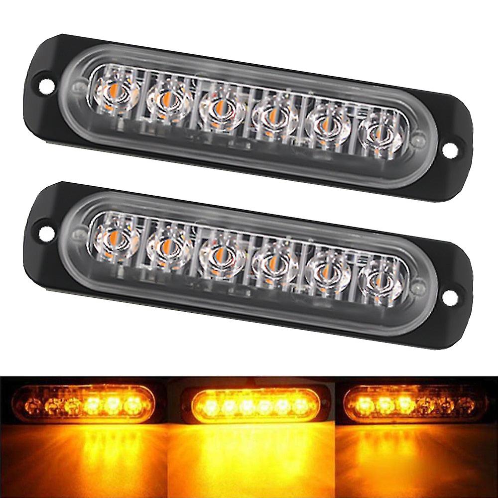 2X Truck 12v 24v 6smd Led Strobe Warning Light Strobe Grille Flashing Lightbar Car Beacon Lamp Amber Yellow White Traffic Light