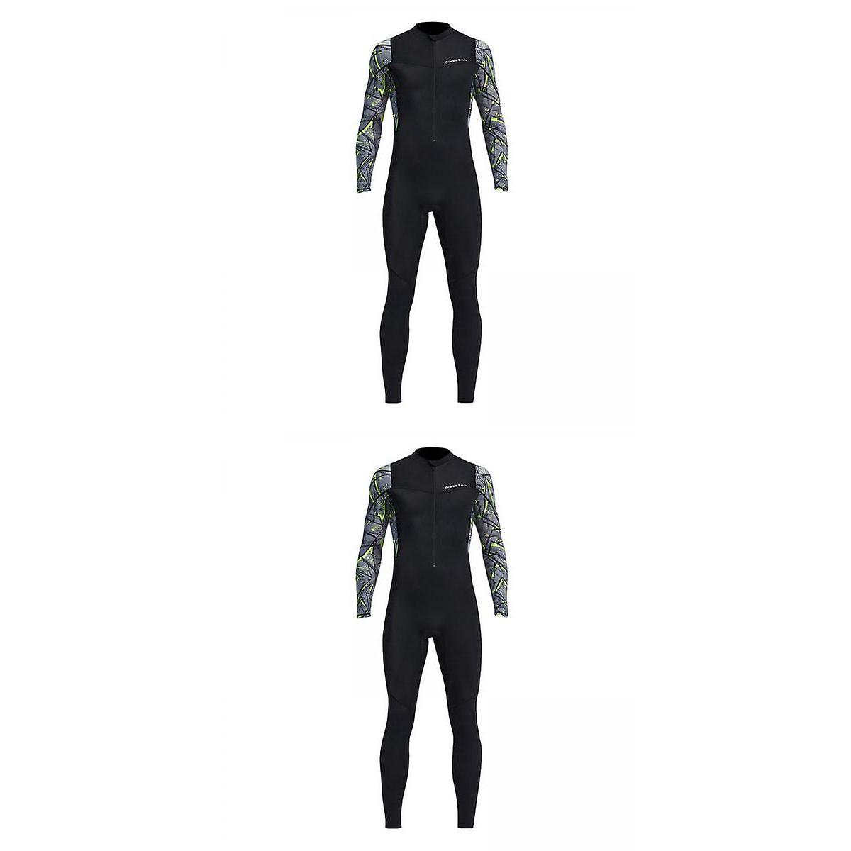 2x Men Scuba Wetsuits Front Zip Diving Rash Guards Swimming Scuba M+XL