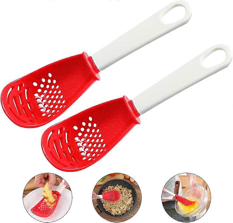 2x Multifunctional Cooking Spoon, Kitchen toolsSkimmer Scoop Colander Strainer Grater Masher, Non-toxic, Heat-resistant, for Cooking, Draining, Mashin