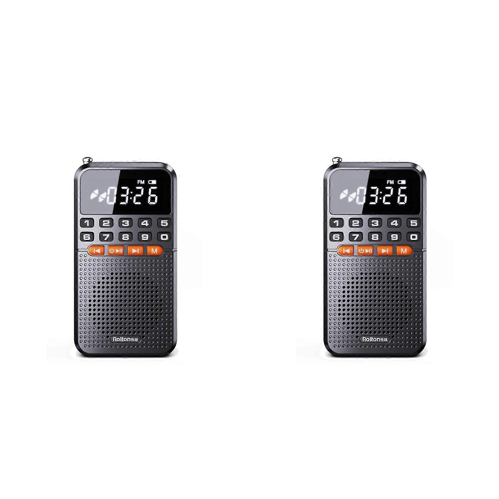 2X Rolton FM Mini Radio Dual Antenna Pocket Radio Receiver Bluetooth Speaker TF Card Music Player with LED Flashlight