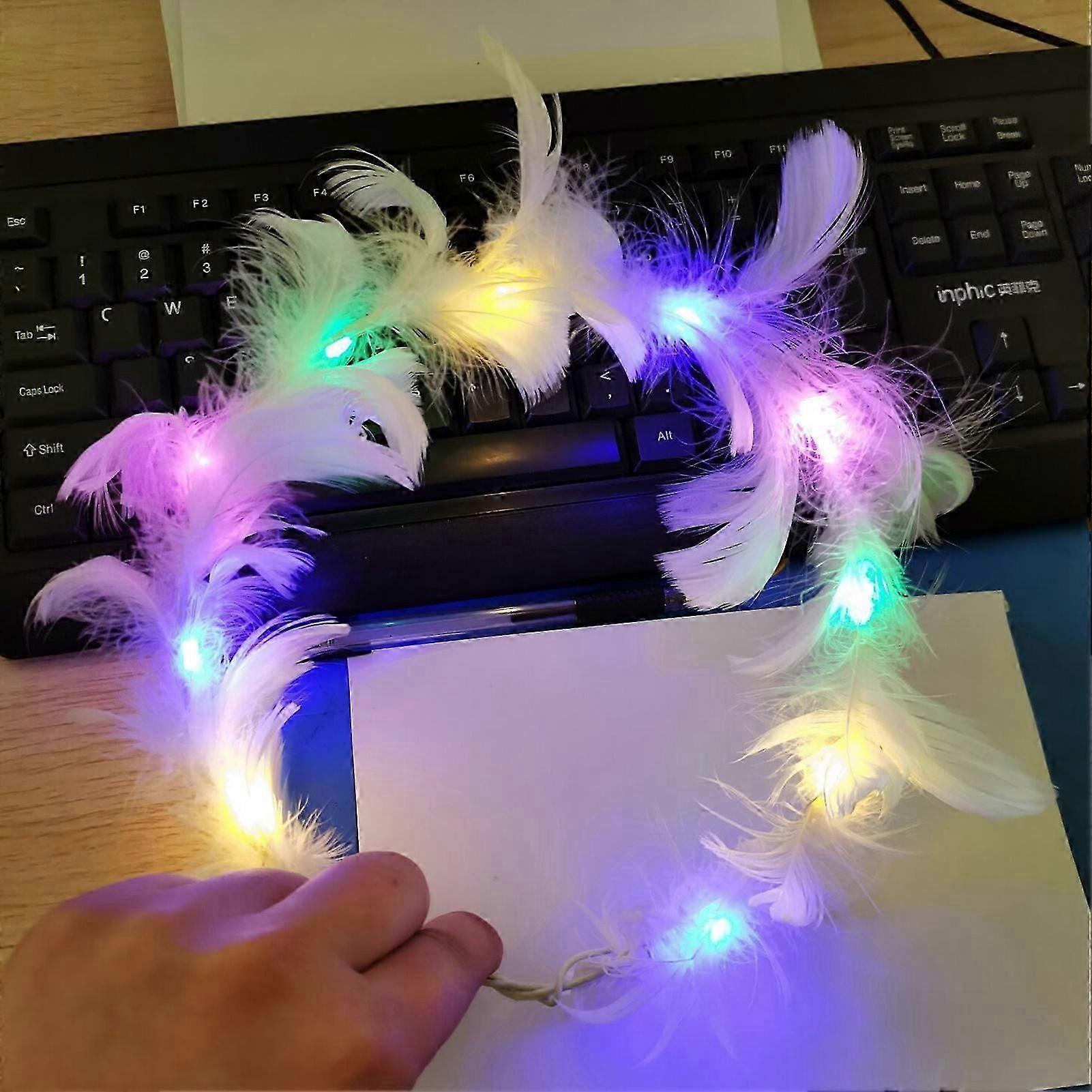 3pcs LED Feather Crown Headband Light Up Headpiece Festival Party Headwear for Photography Halloween Celebrations