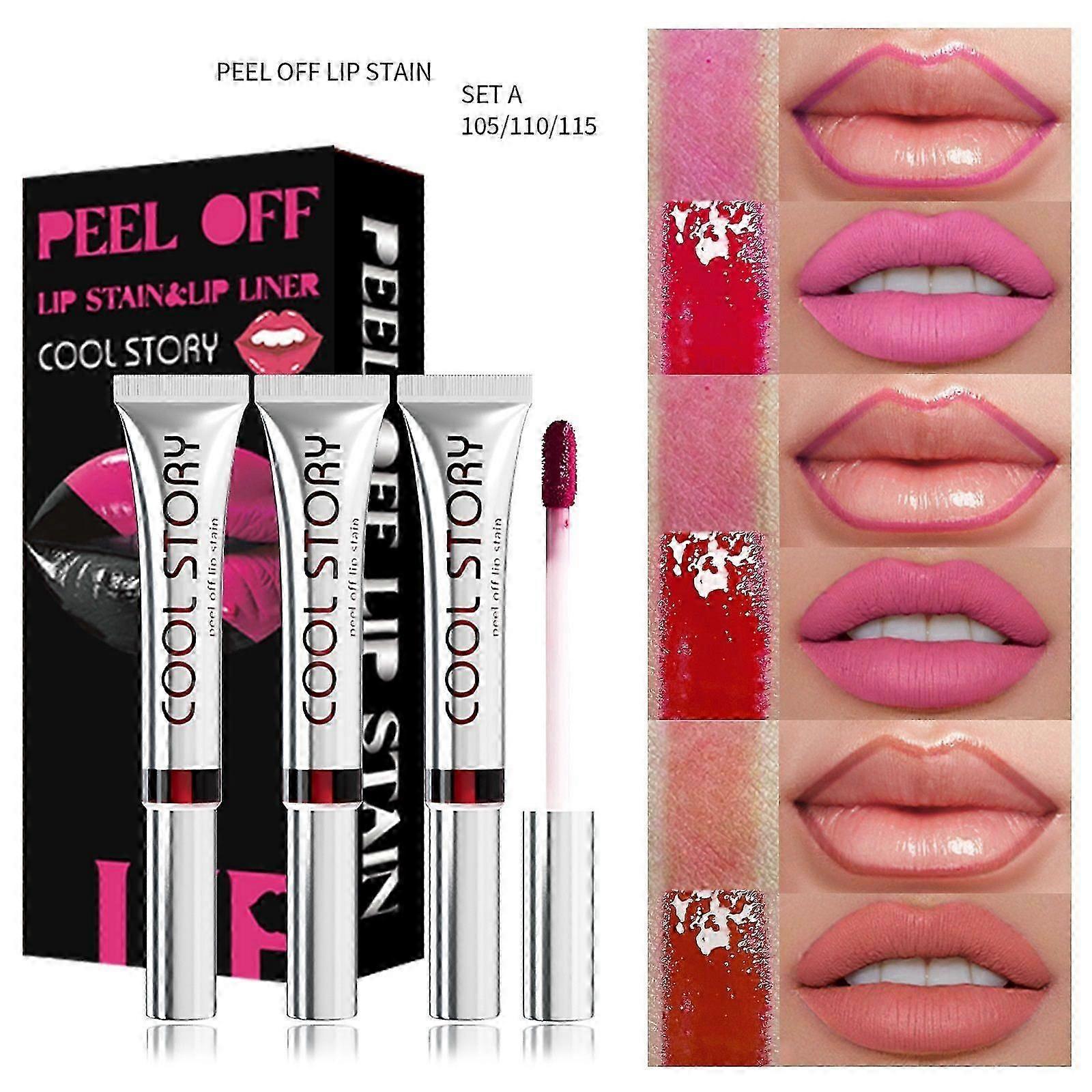 3Pcs Peel Off Lip Stain Lip Tint Set, Matte Lipstick & Lip Liner, Waterproof Long Lasting Peel Off Lip Gloss Lip Makeup Kit