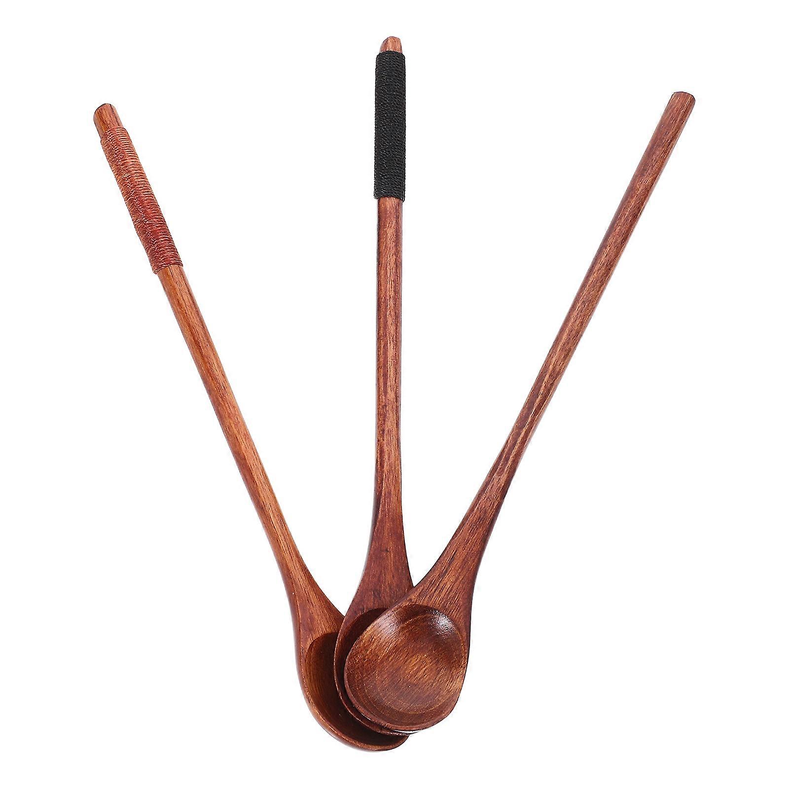 3pcs Long Wooden Coffee Tea Spoons Handmade Honey Spoons for Kitchen Mixing Stirring Eating Retro Style with Handle