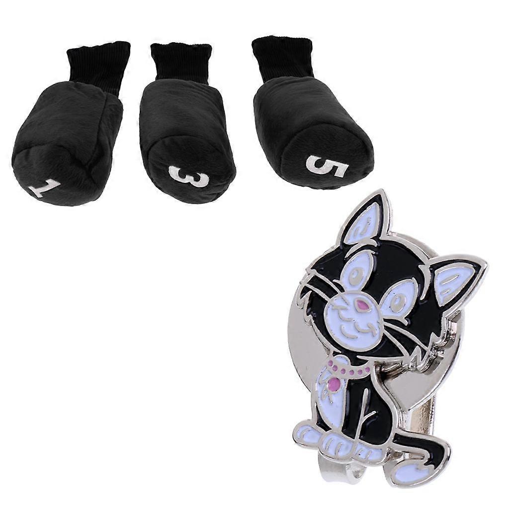 3pcs Long Neck Golf Club Head Cover Wood Headcover Hat Clip Black
