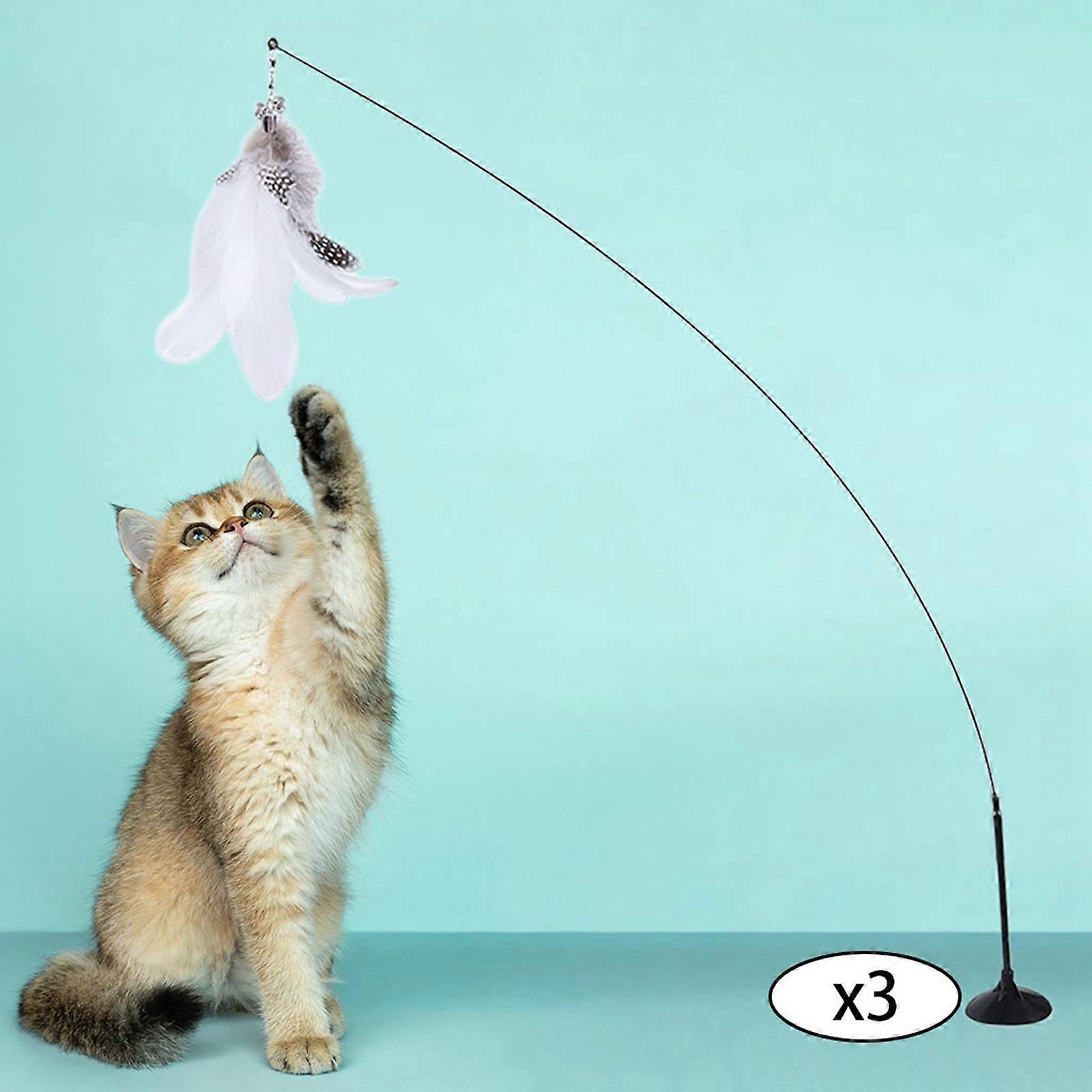 3 Cat Teaser Stick Toy Interactive Suction Cat Toys for Catch Kittens