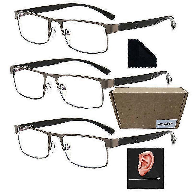 3-Piece Metal Rectangle Reading Glasses with Strengths 15 20 25 30 35 40