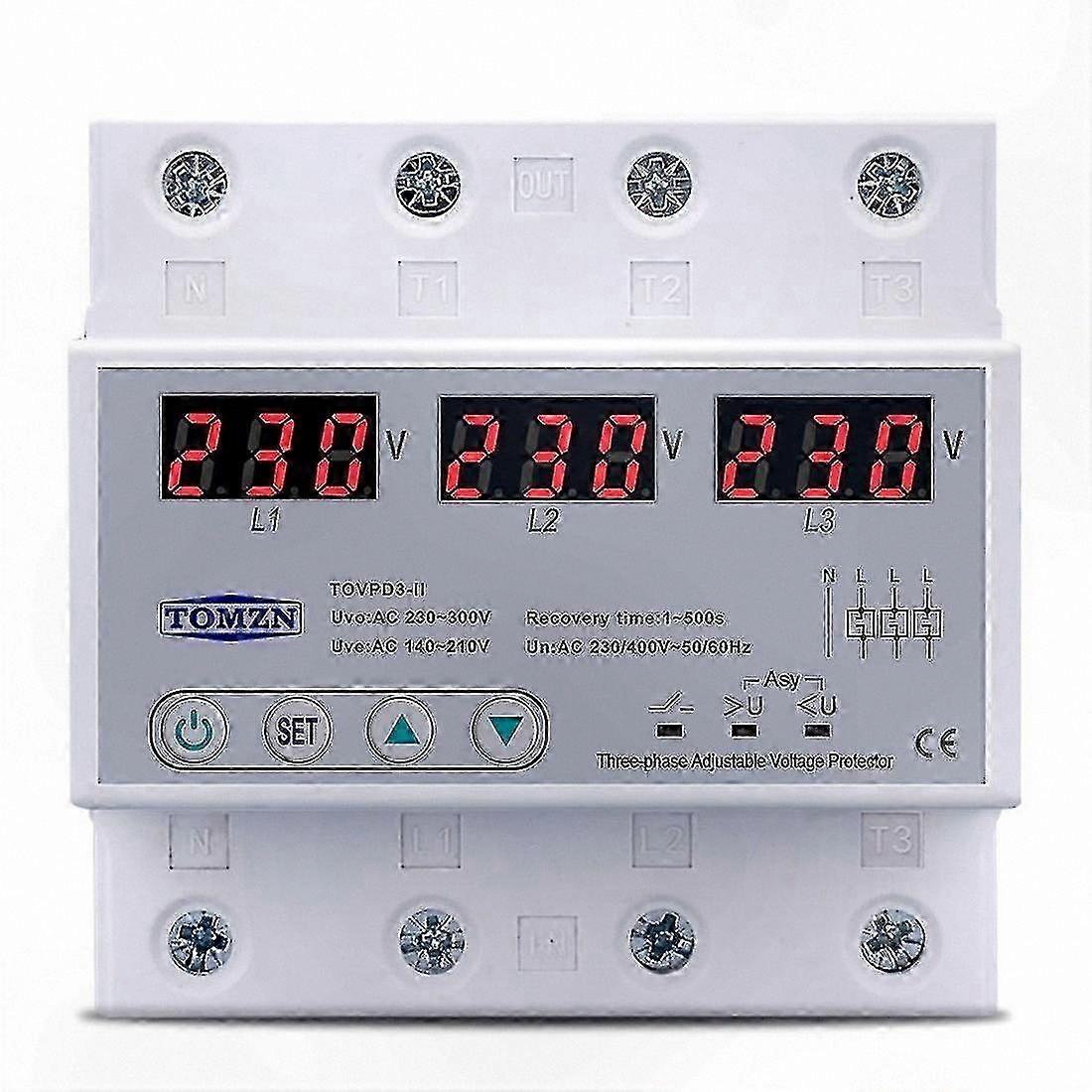 3-Phase Adjustable Voltage Protector, 63A 380V Over/Under Safety Reset Solution
