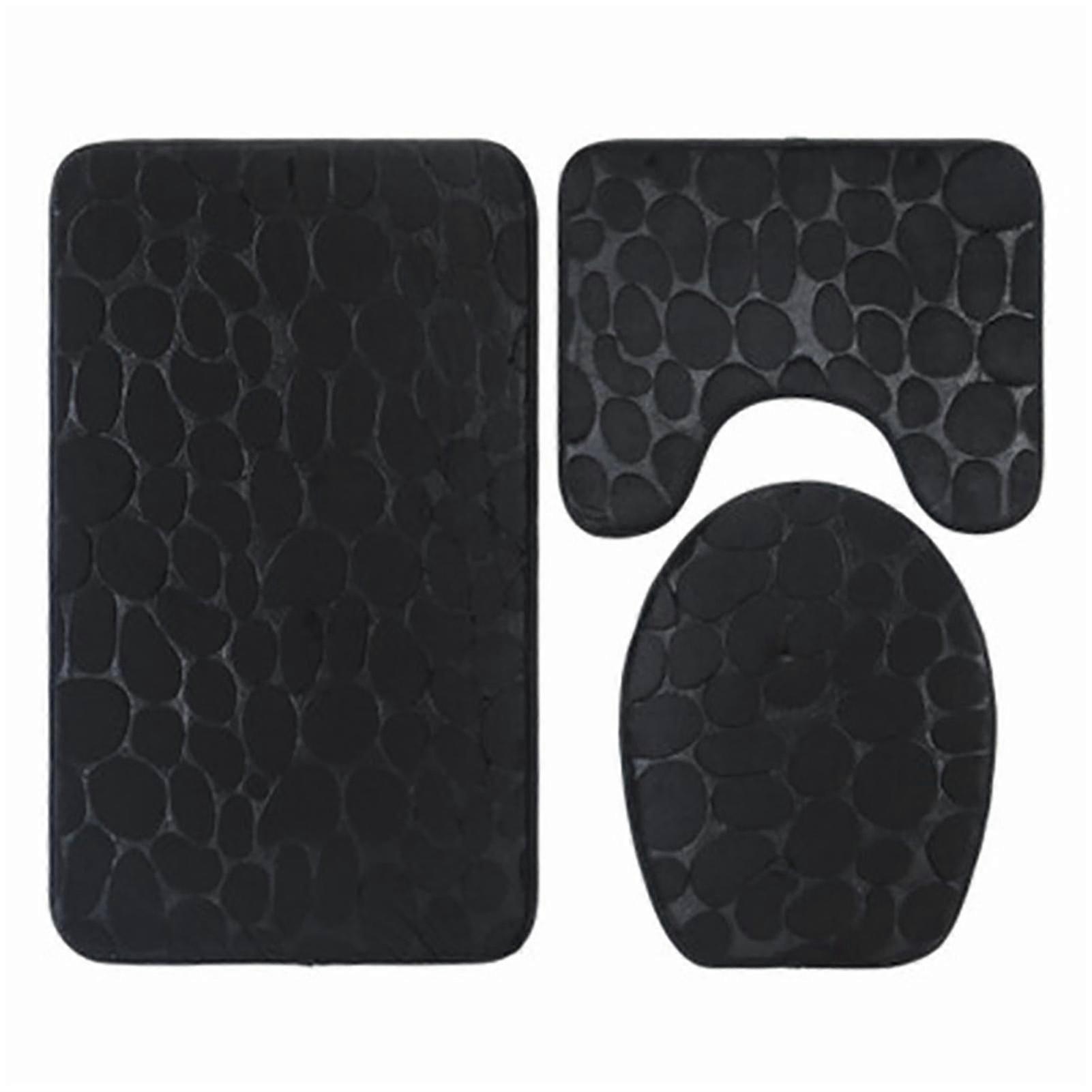 3-Piece Black Bath Mat Set with Cobblestone Texture for Toilet & Floor - Non-Slip