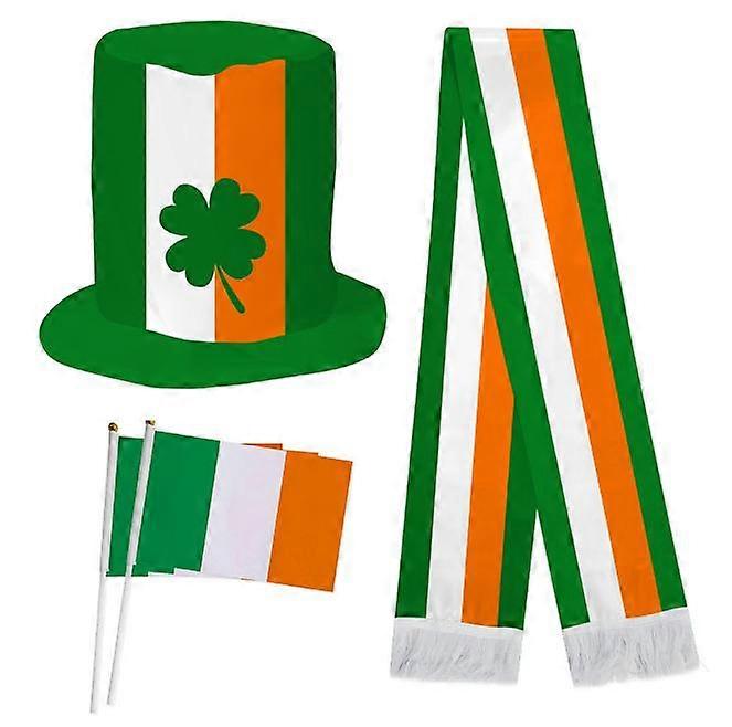 3 Pieces St. Patrick's Day Party Hat with Hand Held Flags and Scarf