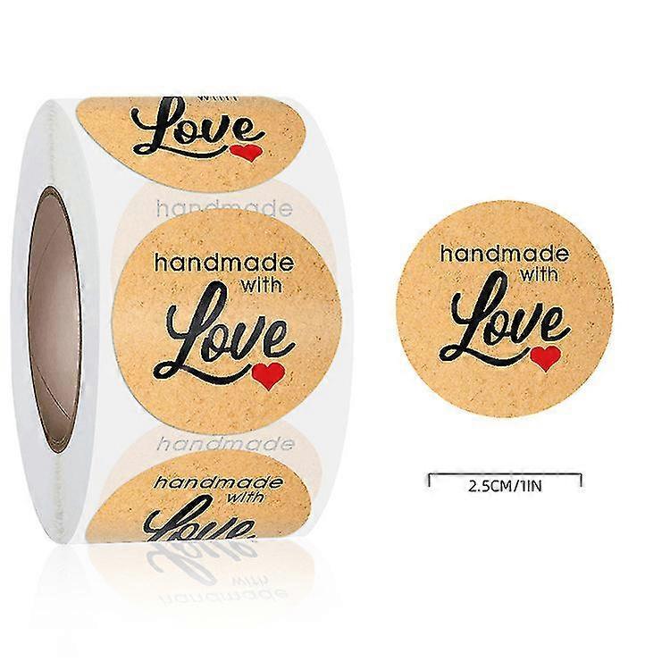 3 Rolls Kraft Homemade With Love Stickers Label Paper Sealing Stickers Labels Round Self-adhesive Gift Stickers