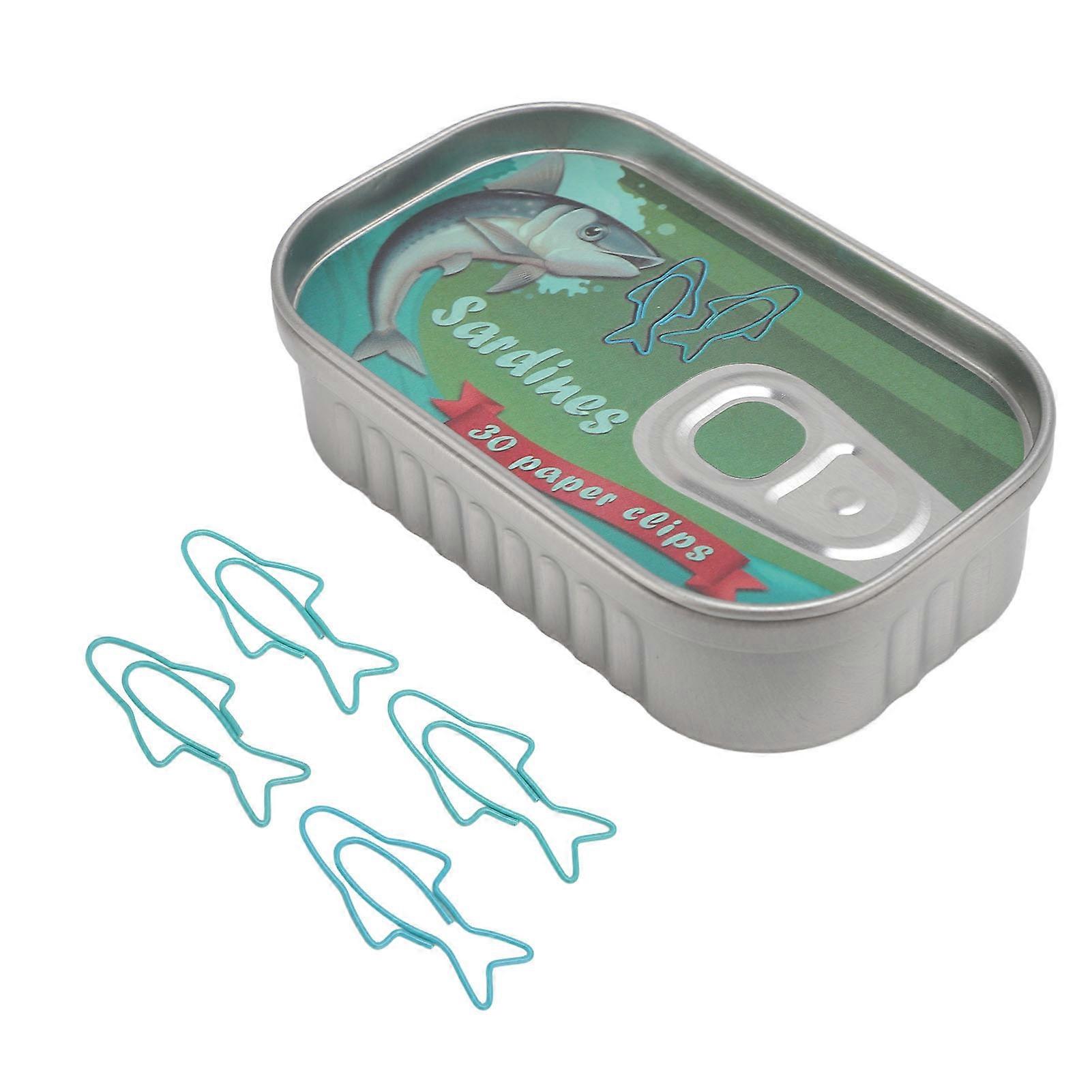 30 Pcs Fish Paper Clip Blue and Water Green Cute Shape Metal Paperclip with Storage Box for School Office