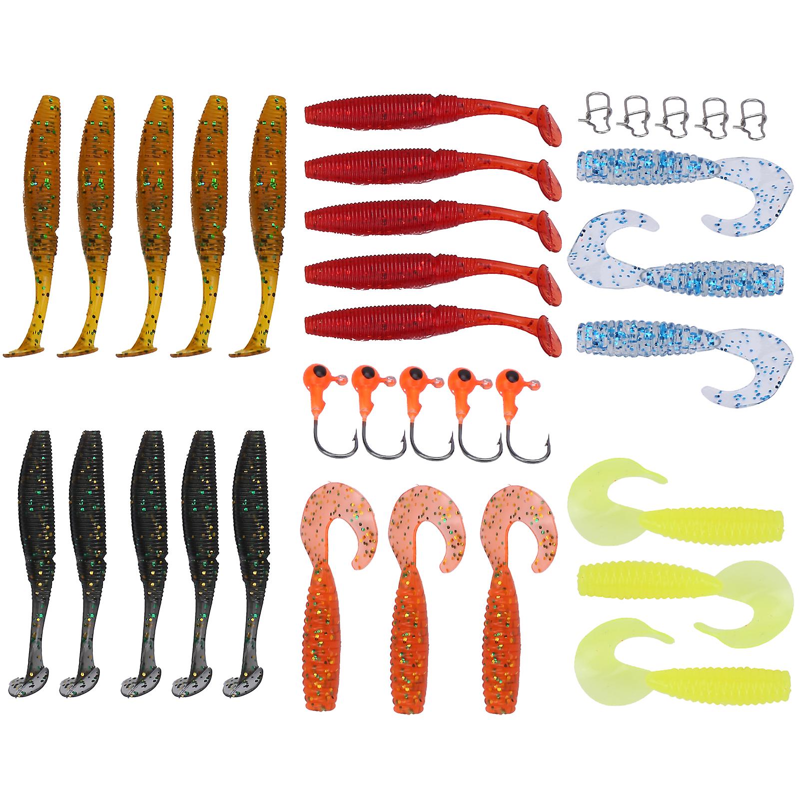 34Pcs set Fishing Lure SingleTailed Soft Insect PVC Lure Bait Suit Fake Fishing Bait Set