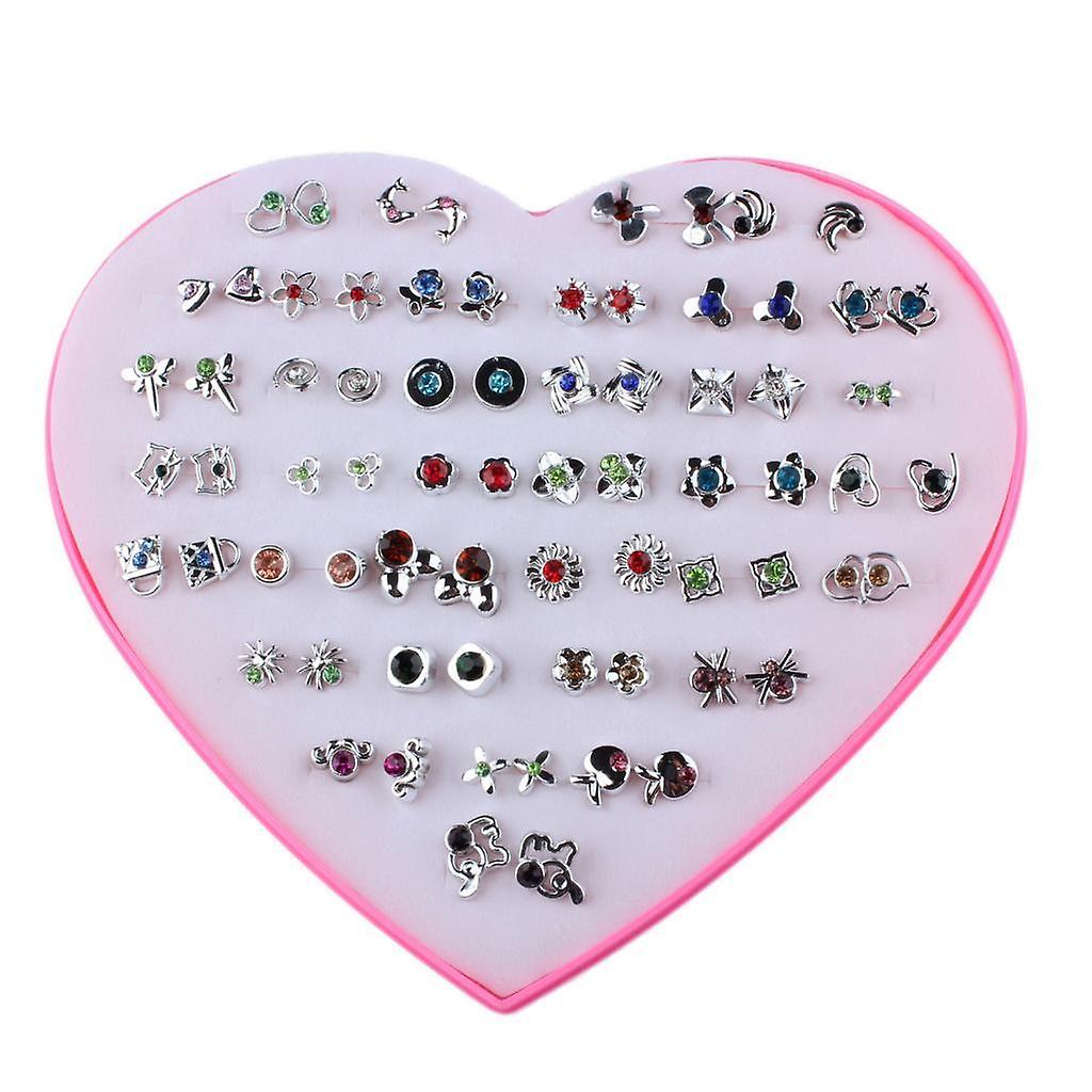 36 Pairs Cute Stud Set Love Heart Box Lady Girl Crystal Flower Earring Studs
