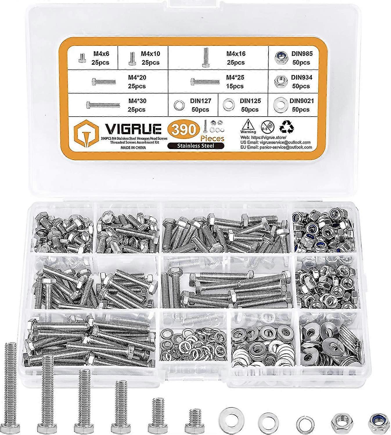 390 Pcs M4 Hex Socket Head Screws Kit, 304 Stainless Steel Outside Corner Hex Bolts, With Flat Washer And Nut Assortment Qyroadwolf