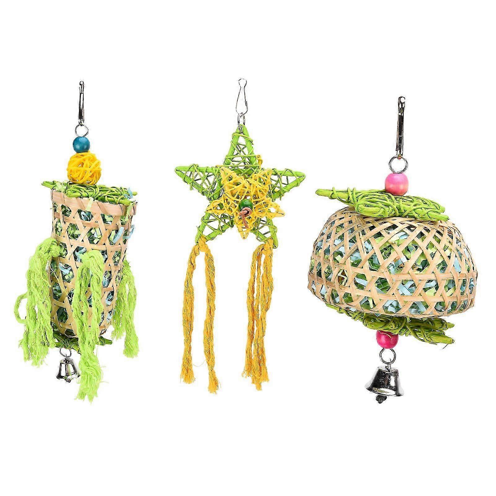 3PCS Bird Chewing Toys with Bells Rattan Ball for Parrots and Budgies