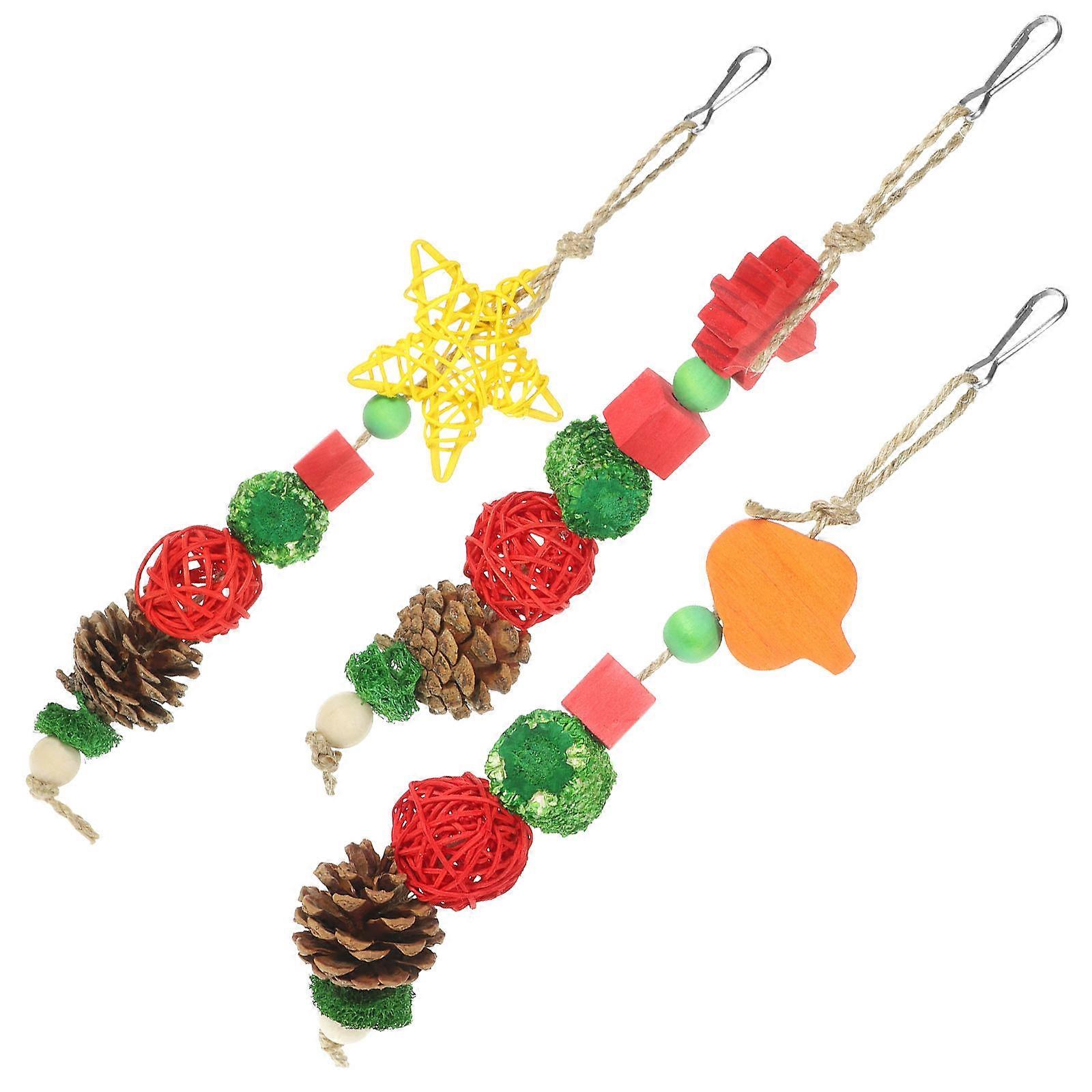 3pcs Parrot Chew Toys for Cage – Vibrant Hanging Shredding Bird Toy with Lightweight Natural Wood Design for Engaging Play
