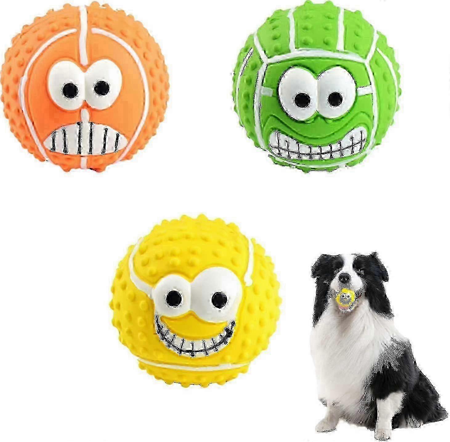 3pcs Squeaky Dog Balls Smiley Face Latex Dog Squeaky Chew Toy 31 Inch Soft Bouncy Fetch Balls For Me