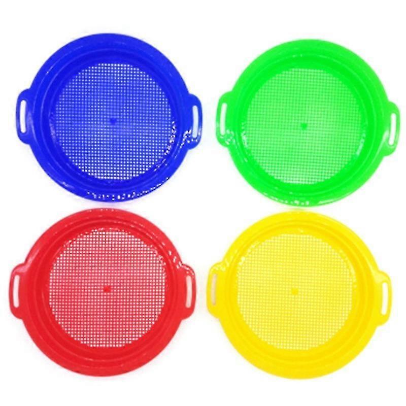 4pcs Stop Sand Sifter Sieves Toy For Sand Beach 4 Pack Set Red Blue Yellow Green For Children Kids