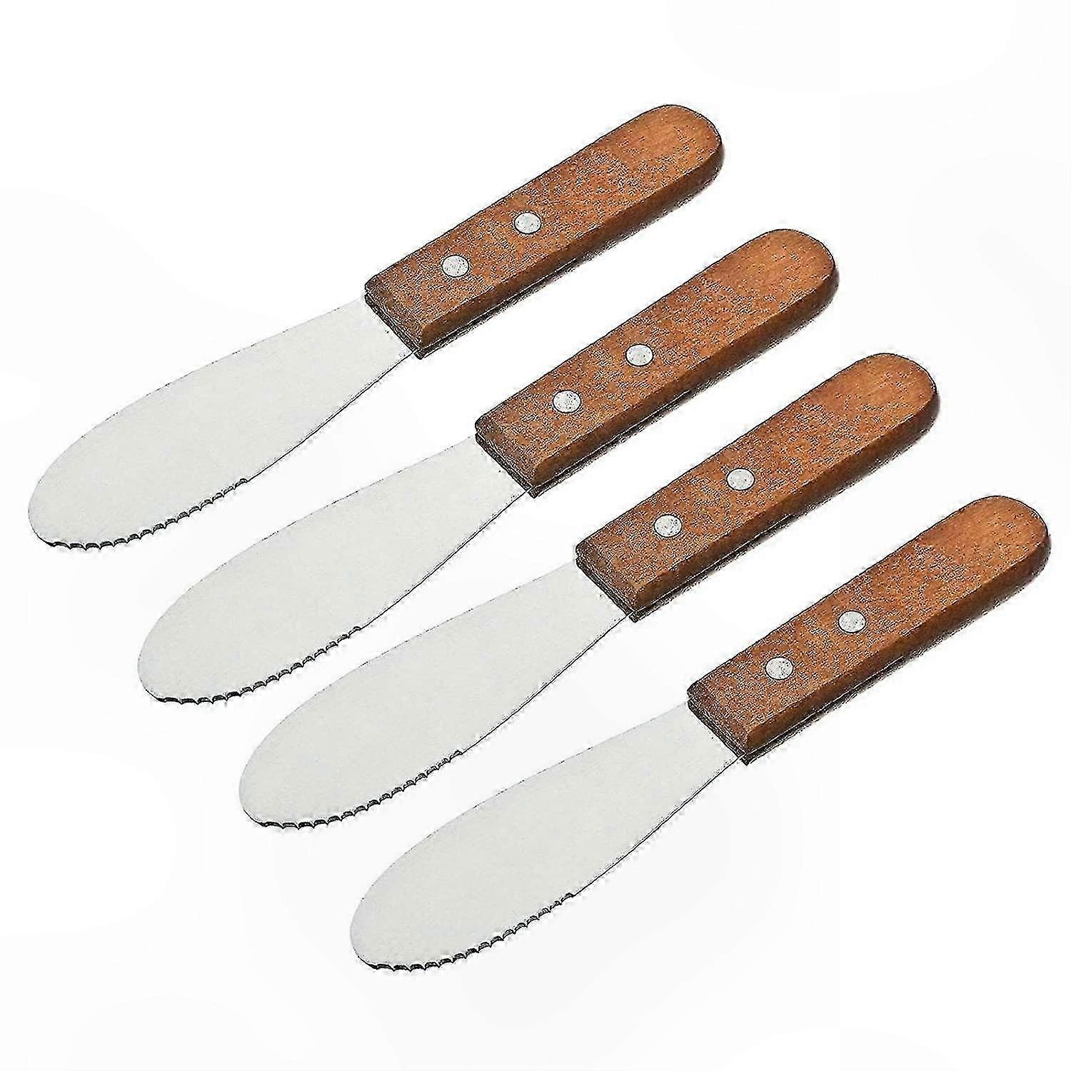 4-Pack Stainless Steel Butter Spreader Knives with Wood Handle, Sharp Edge for Easy Cutting & Spreading
