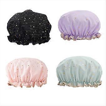 4 Pack Waterproof Reusable Shower Cap, Elastic Bathing Shower Hat
