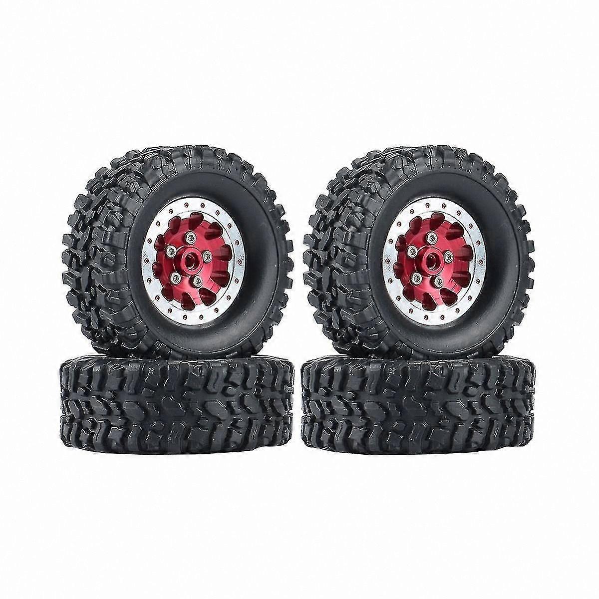 4-Piece Metal Beadlock Wheel Set with Rubber Tires for RC Vehicles C14 C24 B14 B24 B36 D90 MN99S Models