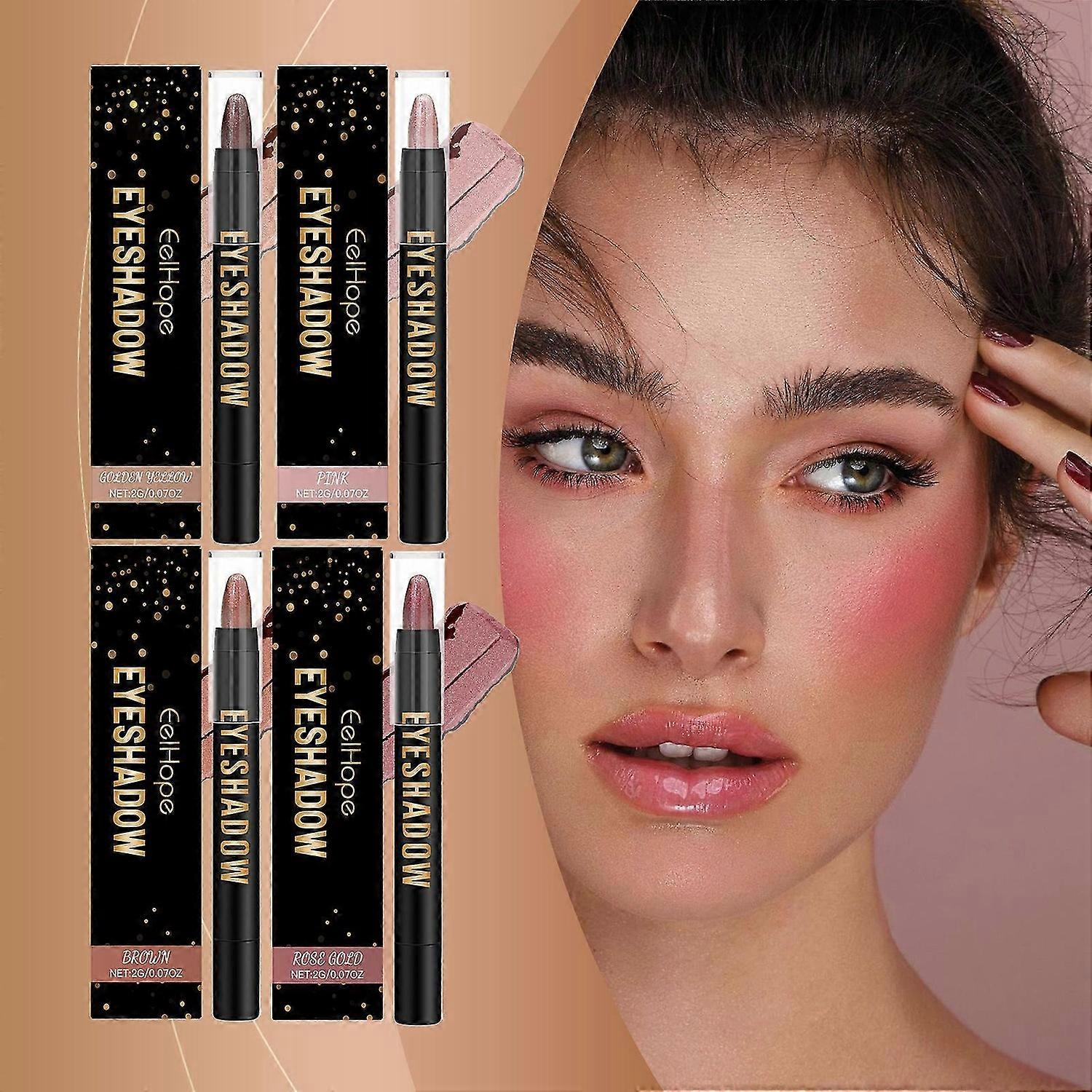 4 Colors Matte Eyeshadow Stick Set, Contouring and Highlight Eyeshadow Stick, Cream Eyeshadow Waterproof Long Lasting High Pigmented