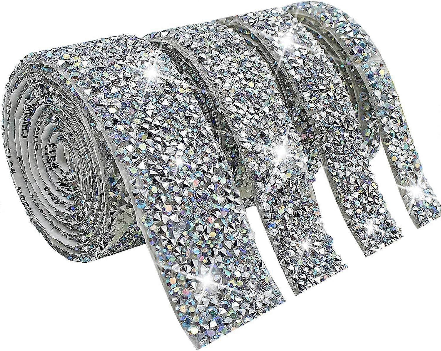 4 Rolls/4 Yards Rhinestone Ribbon, Self Adhesive Crystal Gold Rhinestones Ribbon Bling Wrap