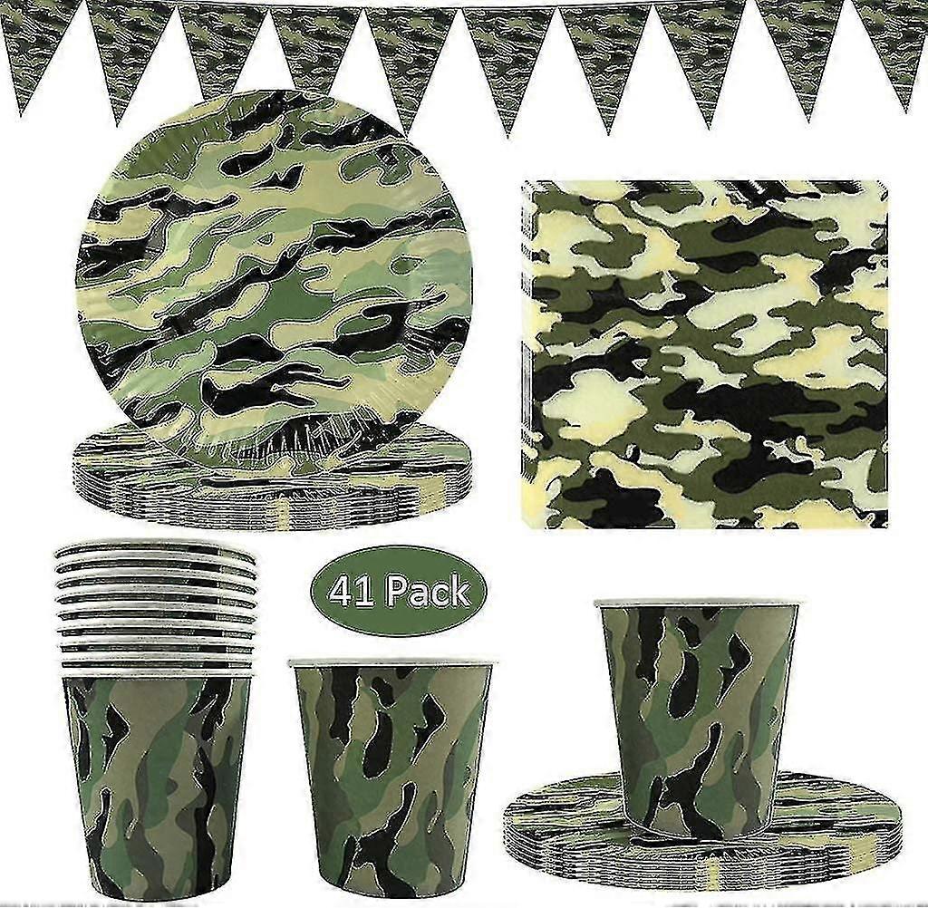 41 Pack Camouflage Disposable Tableware, Camouflage Party Supplies With Camo Plates Cups Napkins And