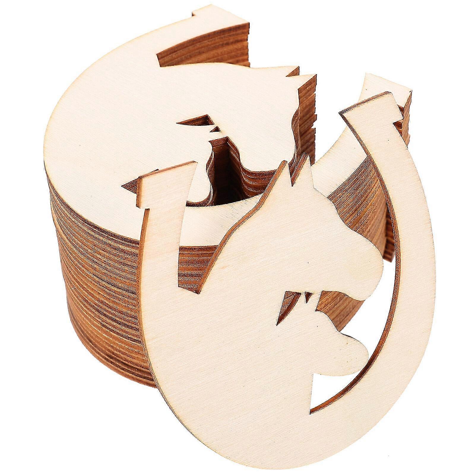48pcs Horseshoe Shape Unfinished Wooden Cutouts Unpainted Diy Wood Slices