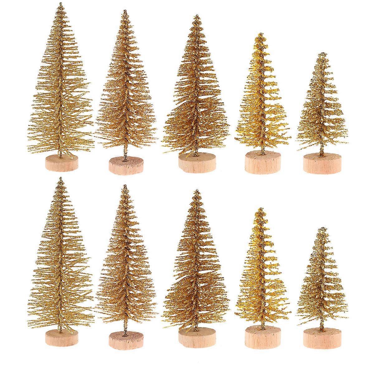 48Pcs Golden Glitter Mini Tree Decorations For Christmas Party Desktop Use 4.5cm To 12.5cm Adding