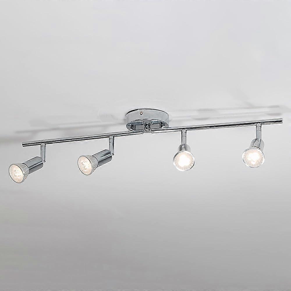 4Light Chrome Ceiling Spotlight Track Lighting Kit, Adjustable Rotatable Lamps for Gallery and Hallway