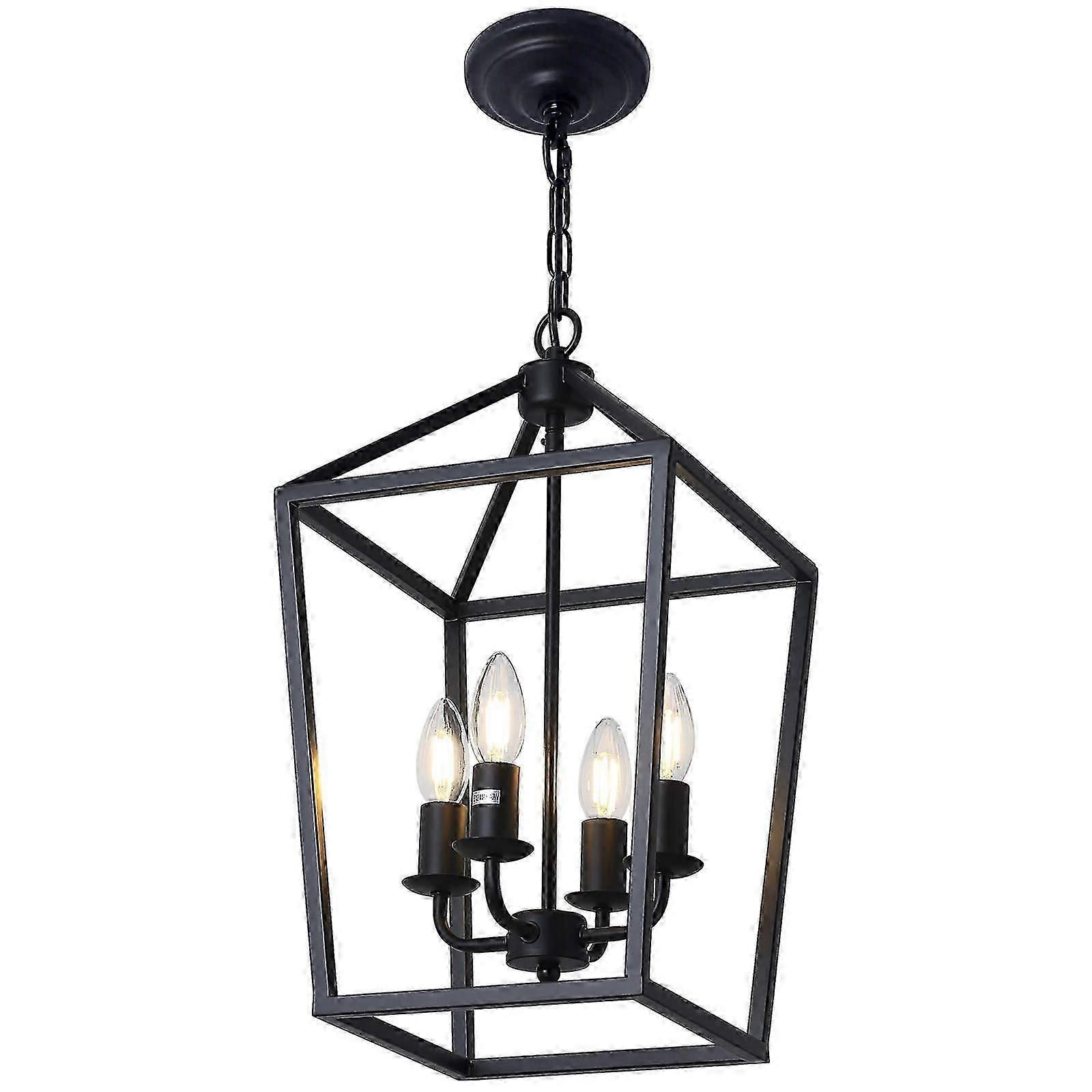 4Light Black Farmhouse Chandelier Iron Lantern Pendant Light Rustic Cage Hanging Lights