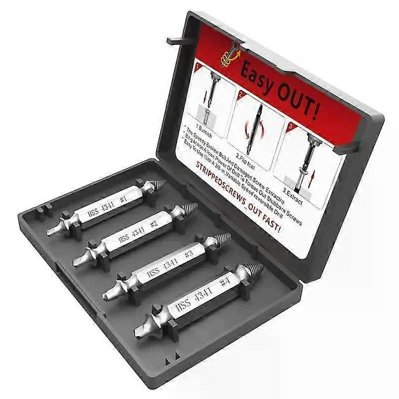 4Pcs Broken Screw Remover Drill Bit Set Drill Bits Double Side Broken Screw Extractor Extractor Removal Tool Set
