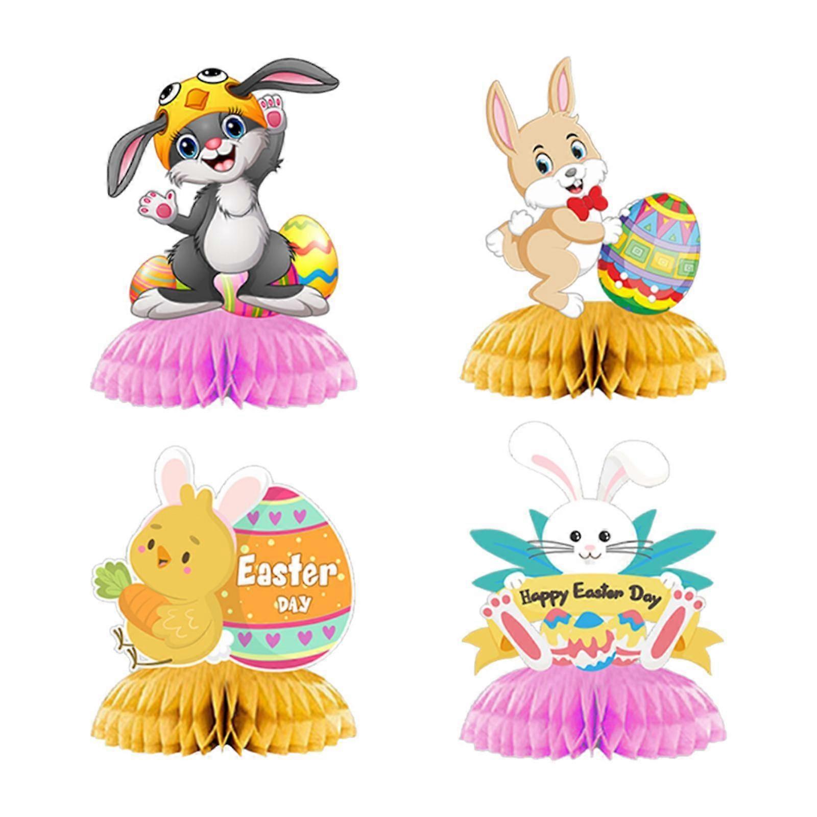 4Pcs Easter Bunny Decorations Honeycomb Centerpieces Versatile Easter Signs