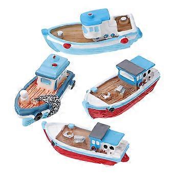 4pcs Mediterranean Style Resin Fishing Boat Models Miniature Nautical Crafts for Dollhouse Ornament & Home Display – Random Assorted Designs